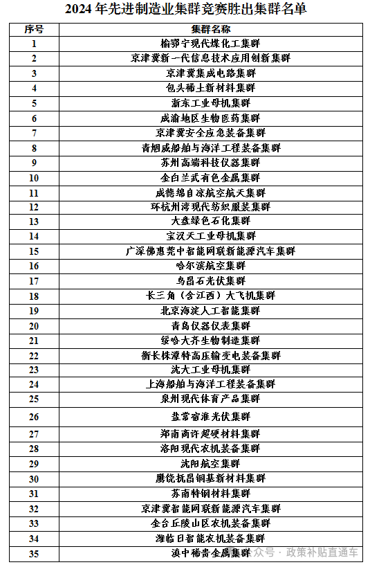 2024年先進(jìn)制造業(yè)集群競賽勝出集群名單公示